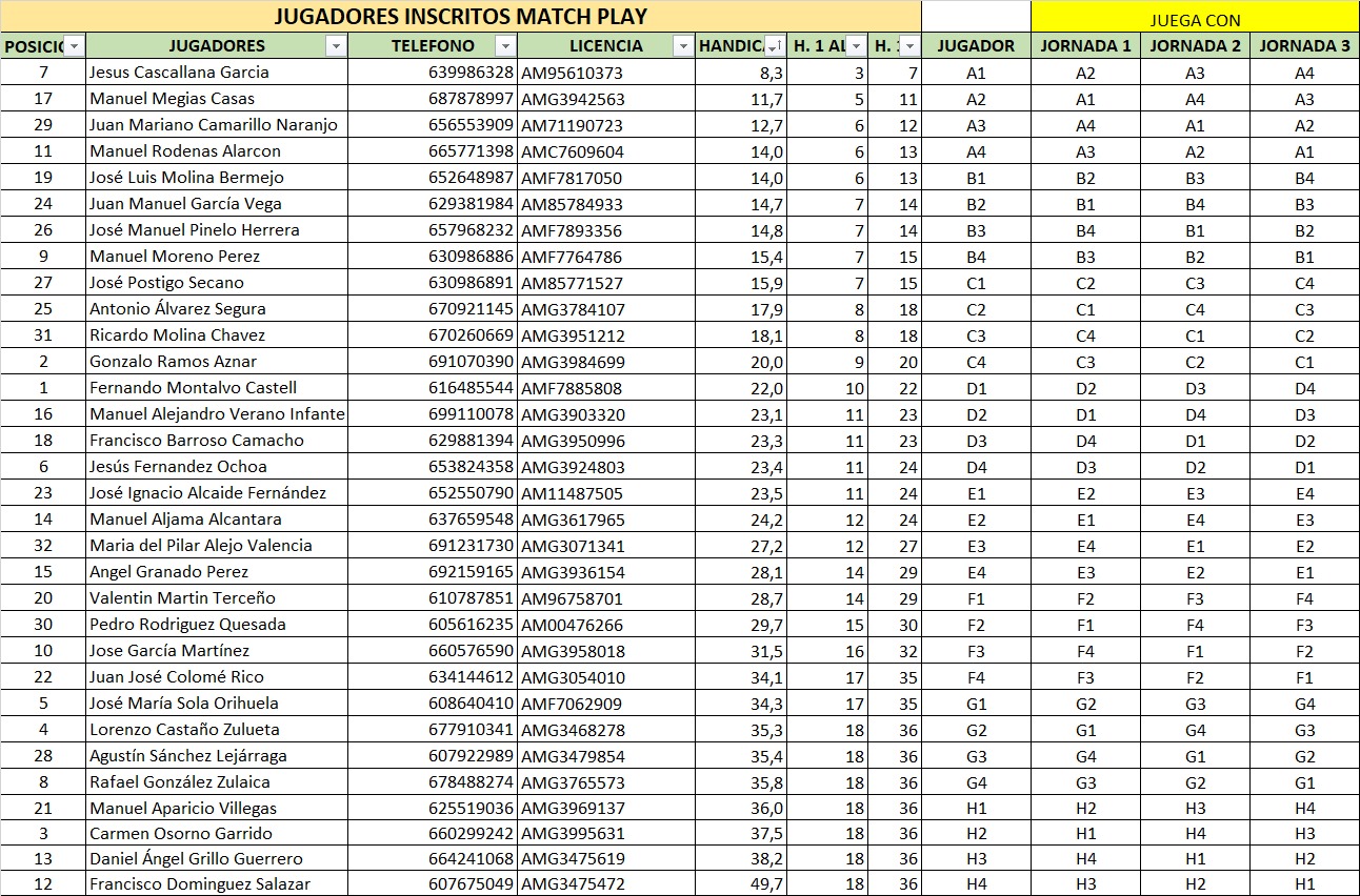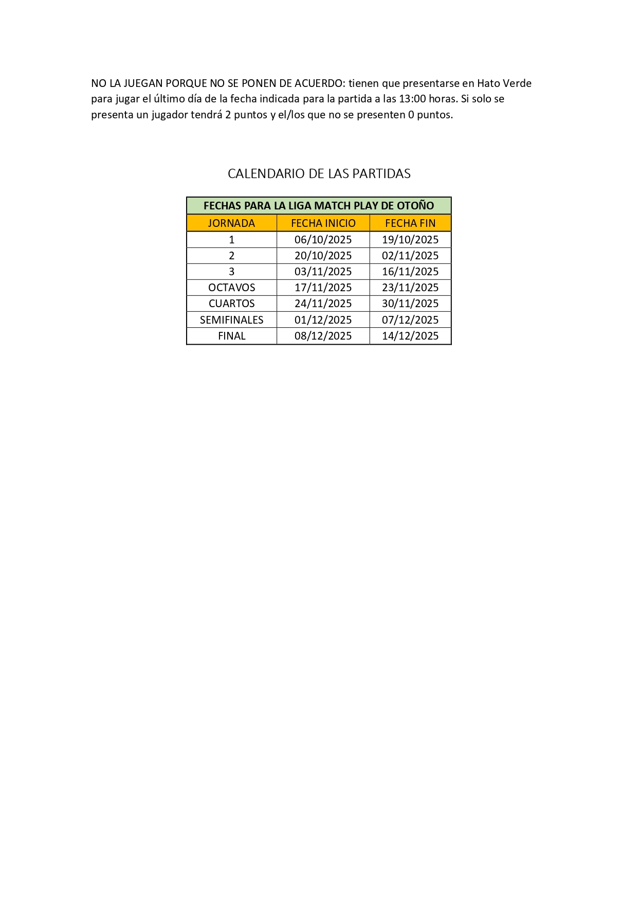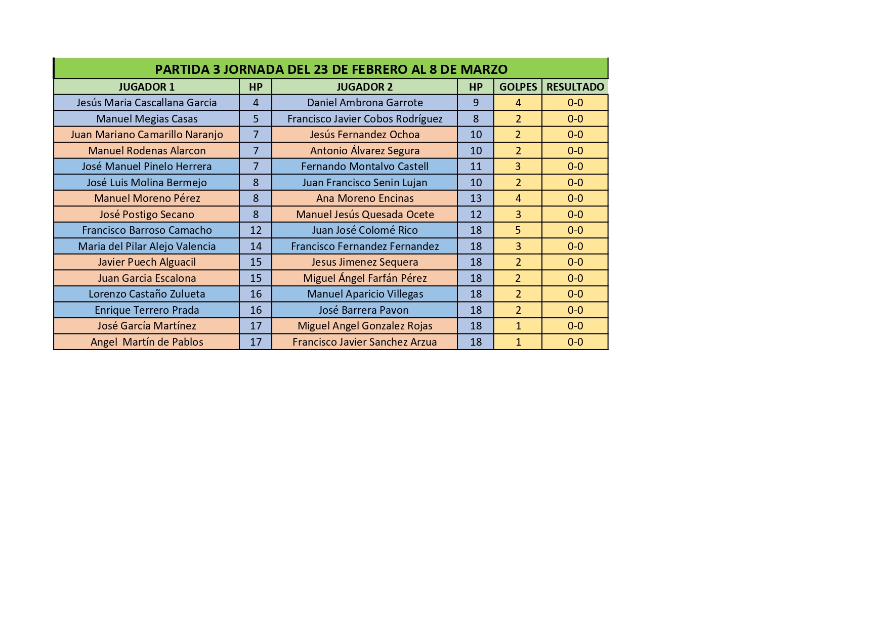 PARTIDAS DE LA TERCERA LIGA MATCH PLAY GOLFISTAS DE SEVILLA