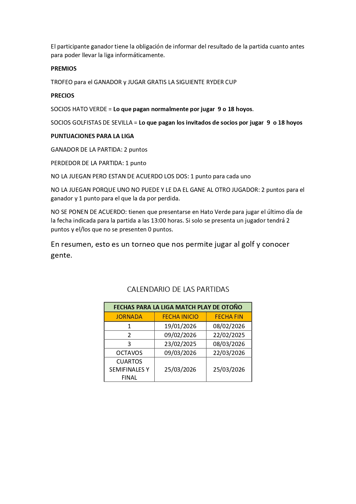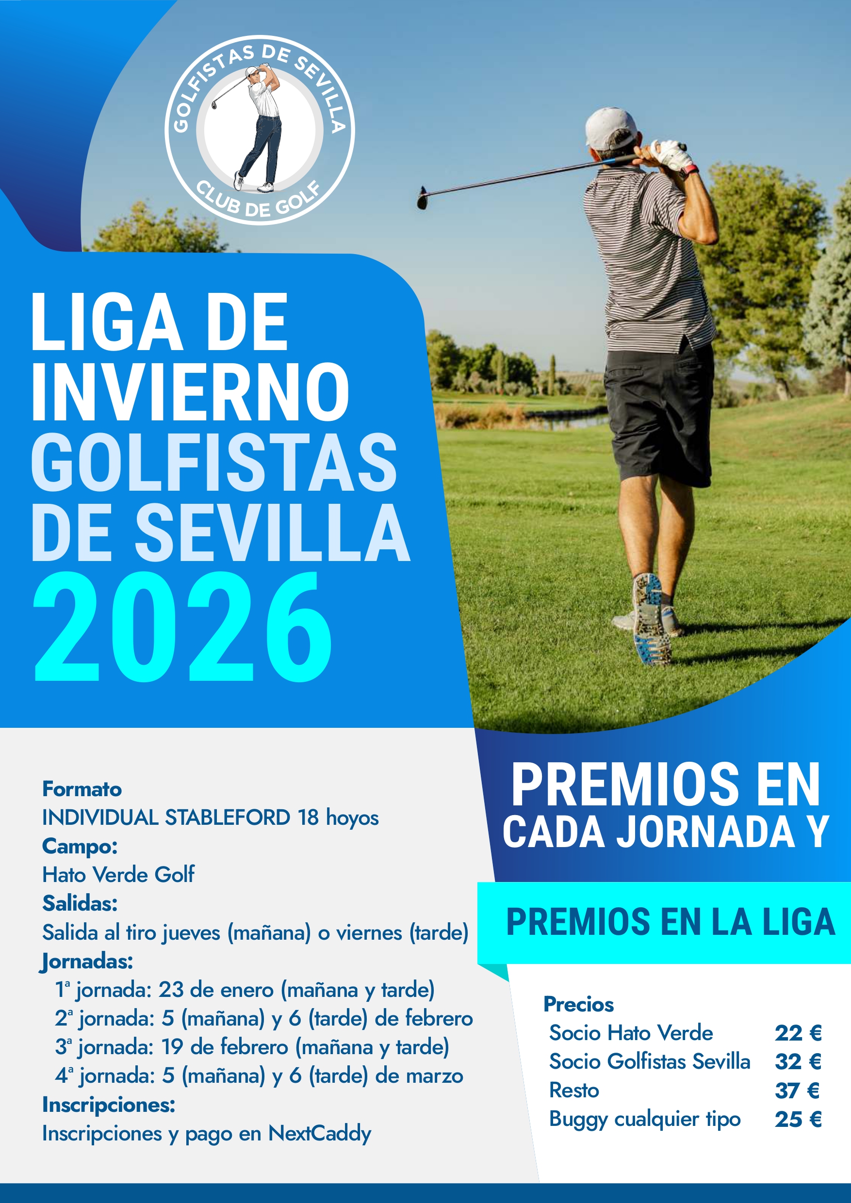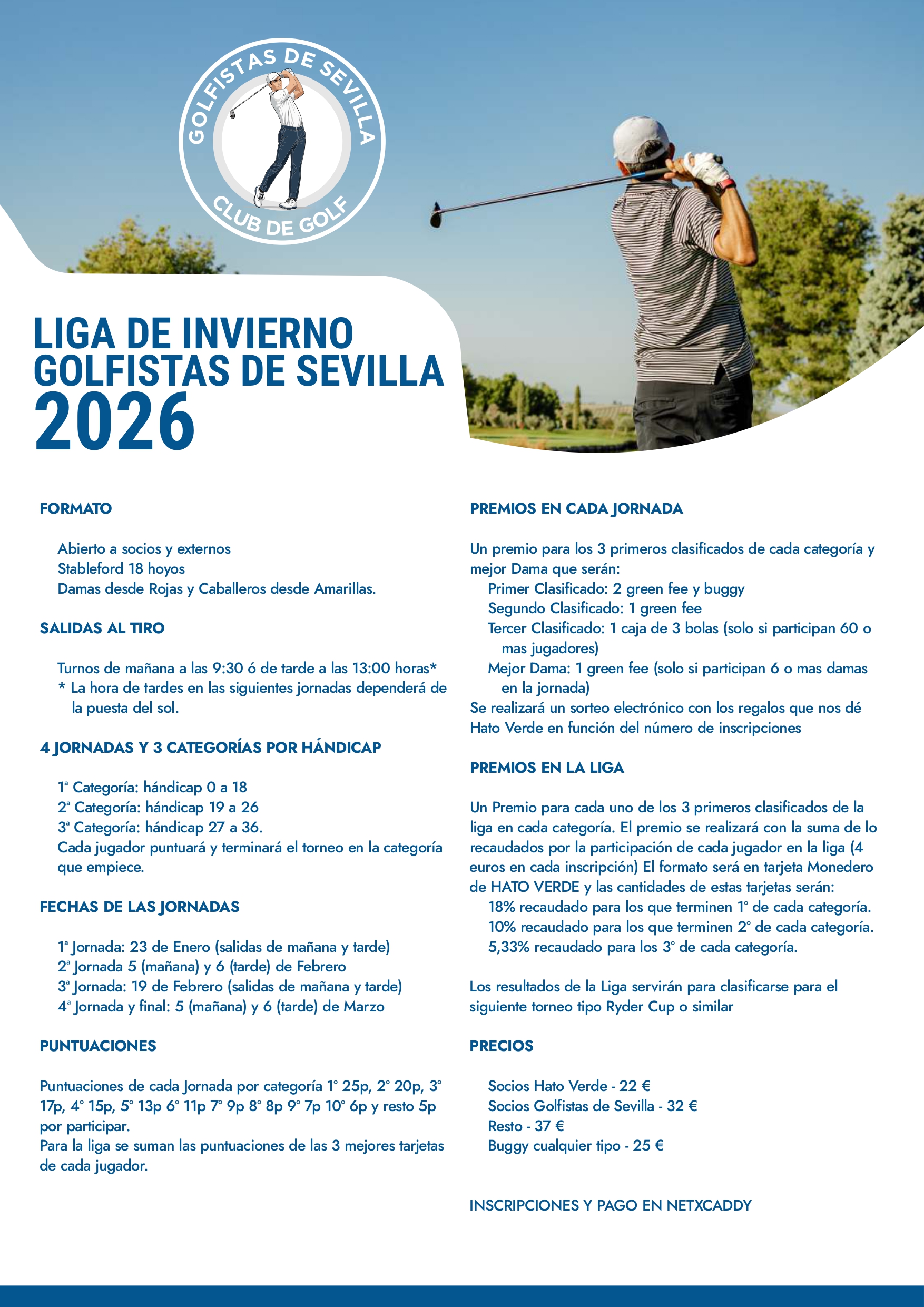 LIGA DE INVIERNO 2026 GOLFISTAS DE SEVILLA 1ª JORNADA 23 DE ENERO (VIERNES) MAÑANA 9:30 Y TARDE 13:30