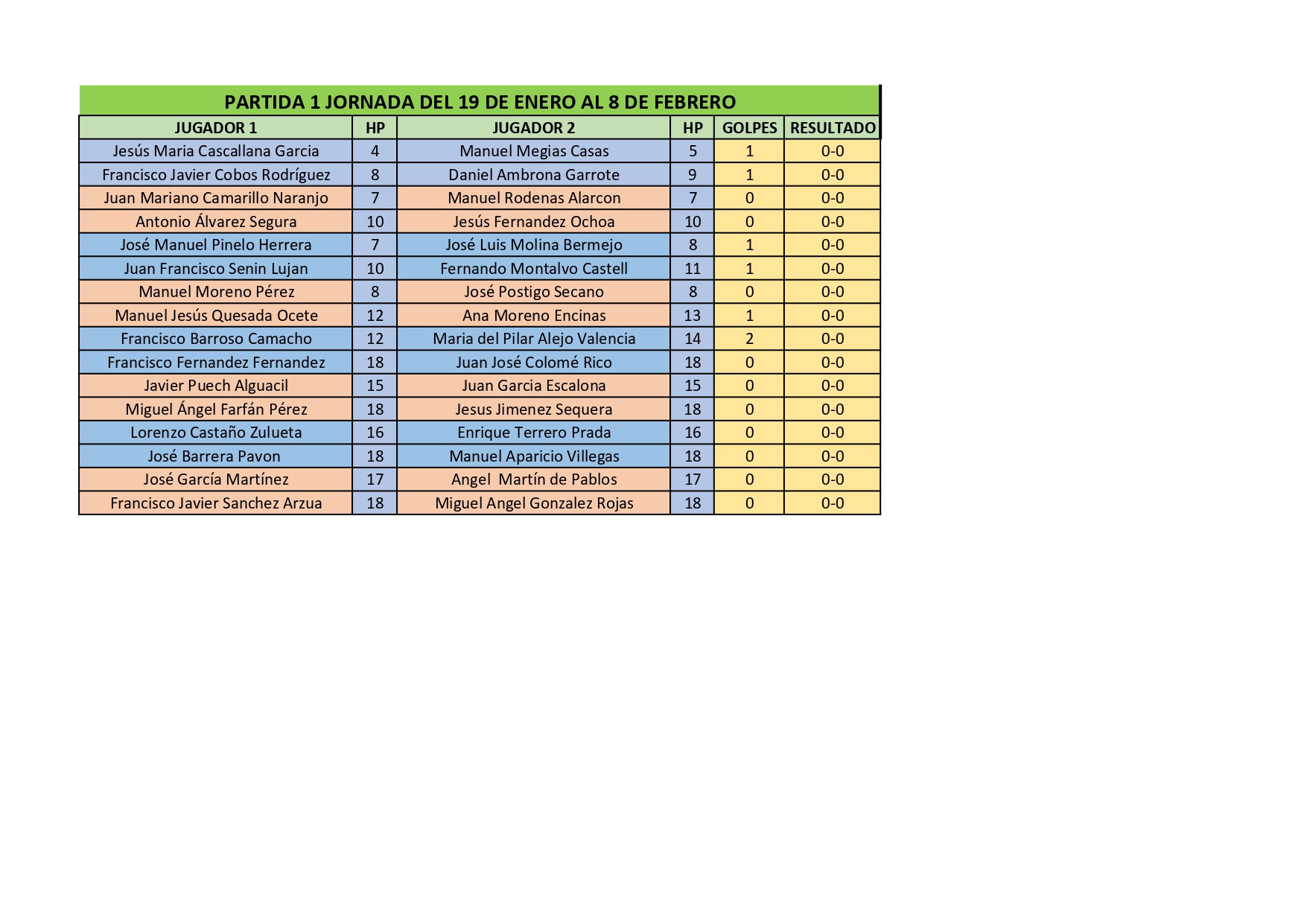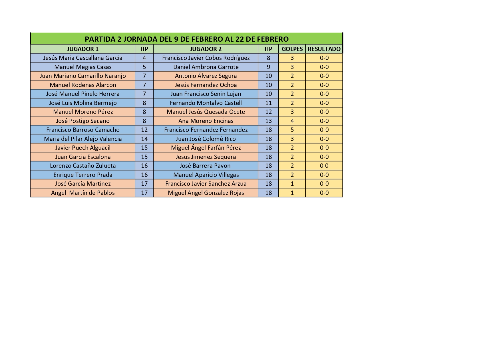 El listado de jugadores definitivos y la constitución de las parejas para el viernes lo pondremos más adelante.